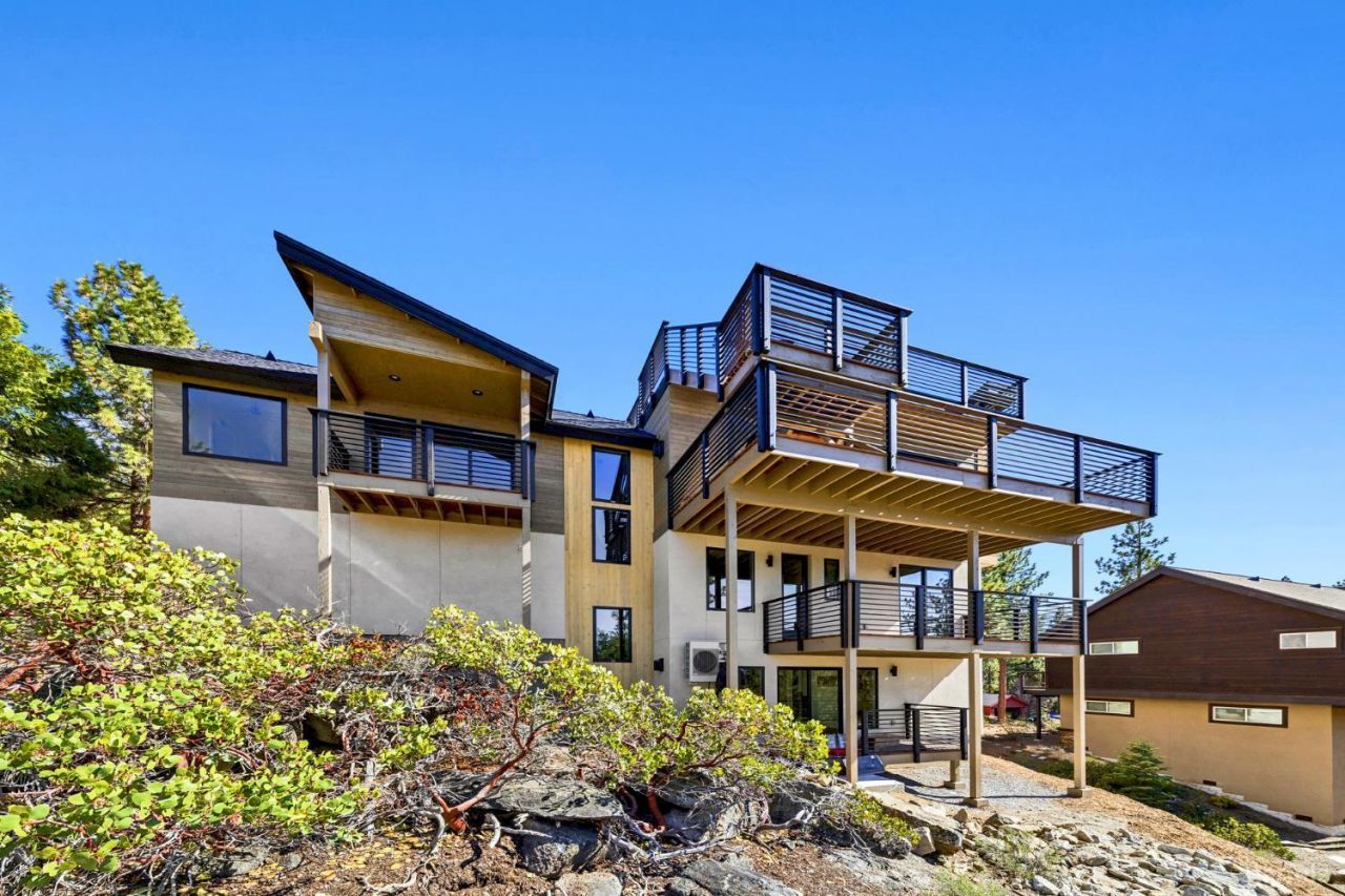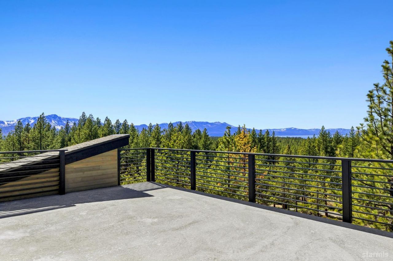 Brand new luxurious home located in the desirable Heavenly Valley area of South Lake Tahoe overlooking multiple Forest Service owned lots. This 3,421 square foot custom home features 4 bedrooms, 4.5 bathrooms, and a 2-car garage and sits on a sunny 11,617 square foot lot with panoramic mountain views and filtered views of Lake Tahoe. The location offers easy access to Heavenly Ski Resort, Stateline, and the lake, making it ideal for both year-round living and vacation use.The spacious upstairs living area is designed to take full advantage of the views and includes tall ceilings, brushed white oak hardwood flooring, and a beautiful contemporary gas fireplace. An Andersen folding door fully opens the living room to the back deck, creating seamless indoor-outdoor living and framing the surrounding mountain scenery and filtered lake views. From the back deck, stairs lead to an expansive rooftop deck offering 360-degree mountain views and stunning views of Lake Tahoe.The kitchen is finished with custom knotty alder cabinetry, granite and quartz countertops, and high-end Thermador appliances, including a built-in 48-inch refrigerator and a 48-inch dual-oven gas range. Additional features include two dishwashers, a built-in microwave, and generous counter space, making it well suited for entertaining and larger gatherings.The primary suite is located on the main living level and includes a private balcony with filtered lake views, a spacious walk-in closet, and a spa like bathroom with a freestanding soaking tub overlooking the mountains, dual-sink vanity, and a stunning custom tile shower.Additionally, there is an office/flex space on the main level that offers a light and bright space to set up a home office.Downstairs are three additional guest bedrooms, including a junior primary suite with its own en-suite bathroom. The other two bedrooms share a Jack and Jill bathroom finished with custom tile and modern fixtures. The laundry room features built-in cabinetry and a utility sink for added convenience.The first floor boasts a large game room with a gas fireplace, wet bar, and a full bathroom. This flexible space could easily function as a theater room, second family room, or even be converted into a fifth bedroom.This exceptional new home offers a rare combination of quality construction, expansive living space, and panoramic mountain and lake views in one of South Lake Tahoe's most desirable locations.